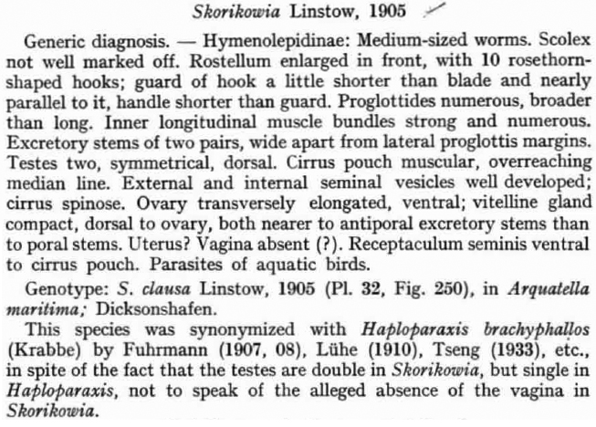 | Type Species | Skrjabinoparaxis tatianae Krotov, 1949 |