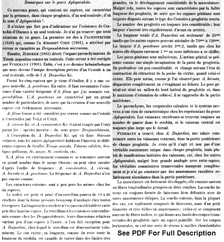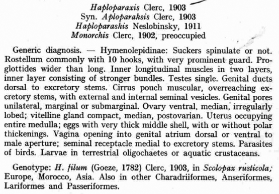 Yamaguti, S. 1959. Systema Helminthum. Vol. II. The Cestodes of Vertebrates. Keigaku Publishing House, Tokyo, 860 pp. (694) Download PDF |