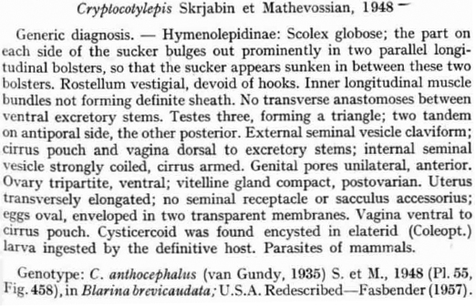 | Type Species | Cryptocotylepis anthocephalus (van Gundy, 1935) Skrjabin & Mathevossian, 1948 |
