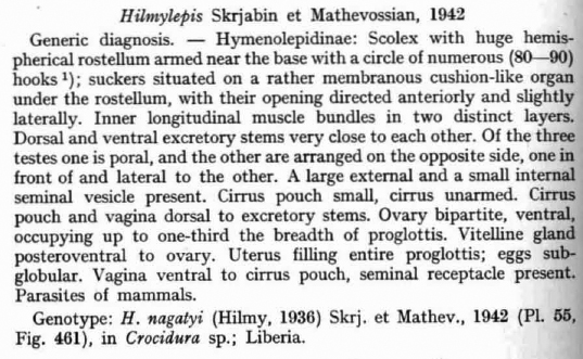| Type Species | Hilmylepis nagatyi (Hilmy, 1936) Skrjabin & Mathevossian, 1942 |