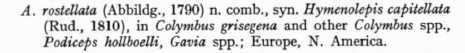 Synonyms Taenia rostellata Abildgaard, 1790; T. capitellata Rudolphi, 1810; Diplacanthus (Dilepis) capitellata Cohn, 1899; Hymenolepis capitellata Railliet 1899