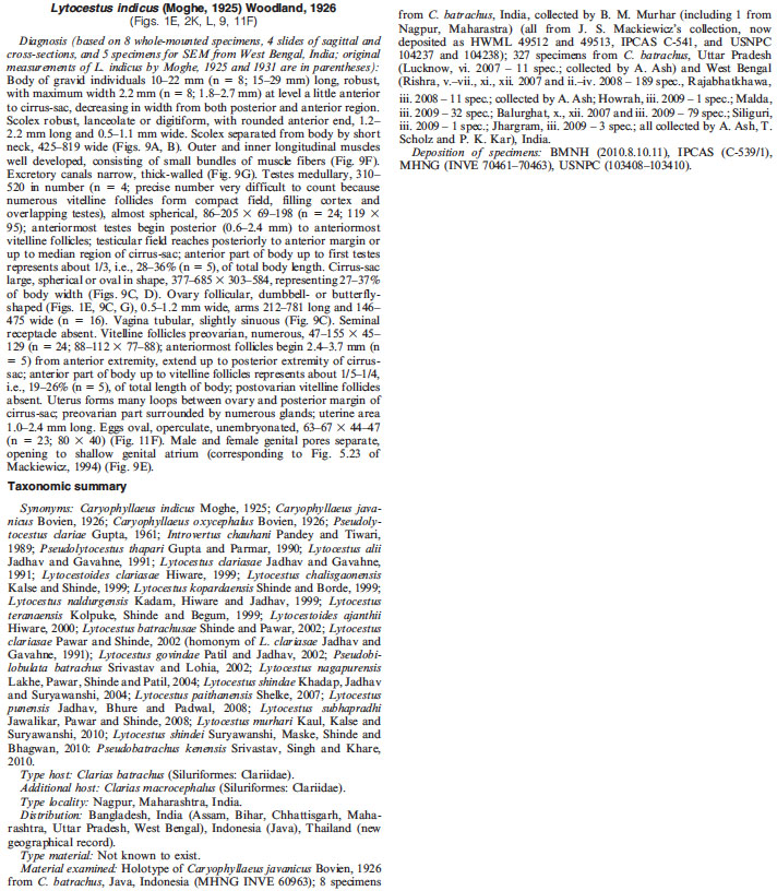 | Valid Name | Lytocestus indicus (Moghe, 1925) |