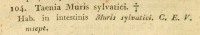 Synonyms | Taenia murissylvatici Rudolphi, 1819 |