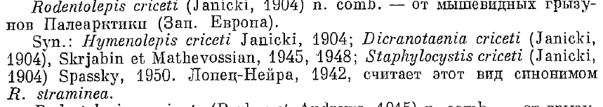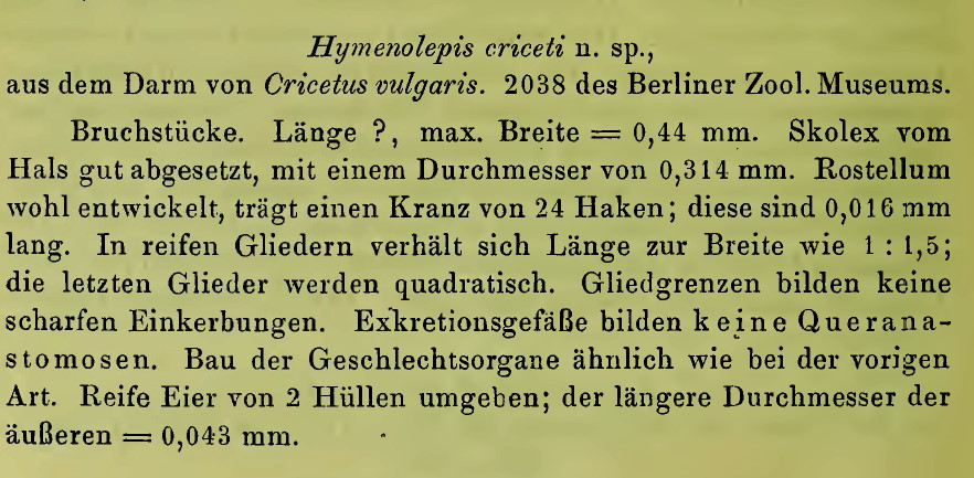 | Synonyms | Hymenolepis criceti Janicki, 1904 |