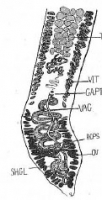 Fig. 16. Caryophyllaeus serialis. Hind end of body. Ca. 20/1.