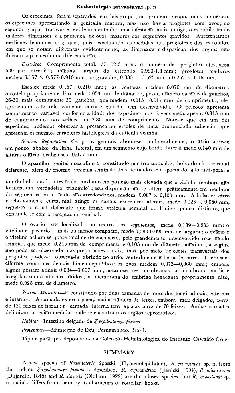 Rego, A. A. 1970. Uma nova especie de Rodentolepis parasita de roedor (Cestoda, Hymenolepididae). H. D. Srivastava Comman. : 251-254. (7478) |