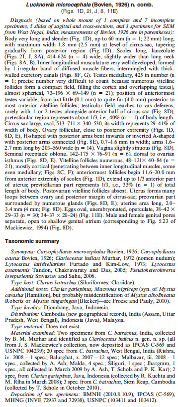 | Host Notes | Type host not indicated but Clarias batrachus appears first |