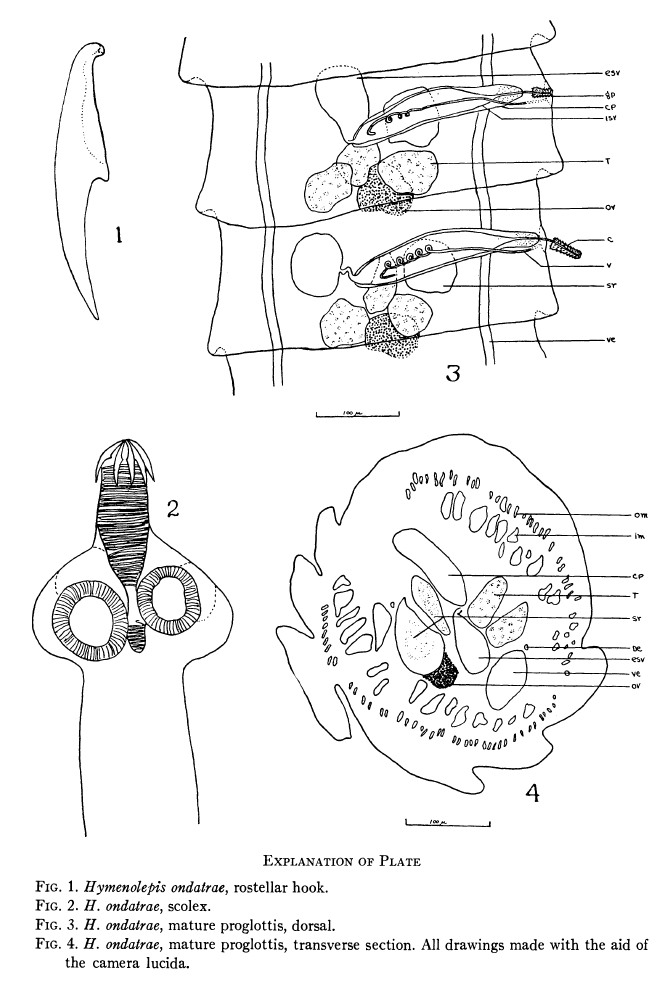 Rider, C. L. and R. W. Macy. 1947. Preliminary survey of the helminth parasites of muskrats in Northwestern Oregon, with description of Hymenolepis ondatrae n. sp.. Transactions of the American Microscopical Society 66: 176-181. (7482) |