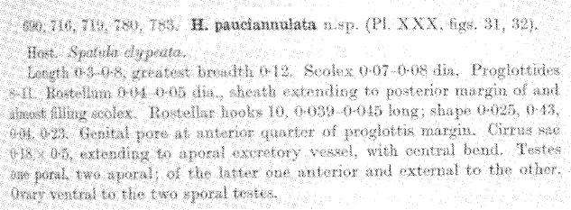 Meggitt, F. J. 1927. Report on a collection of cestoda, mainly from Egypt. Part II. Cyclophyllidea: Family Hymenolepididae. Parasitology 19: 420-450. (5330) Download PDFYamaguti, S. 1959. Systema Helminthum. Vol. II. The Cestodes of Vertebrates. Keigaku Publishing House, Tokyo, 860 pp. (694) Download PDF |