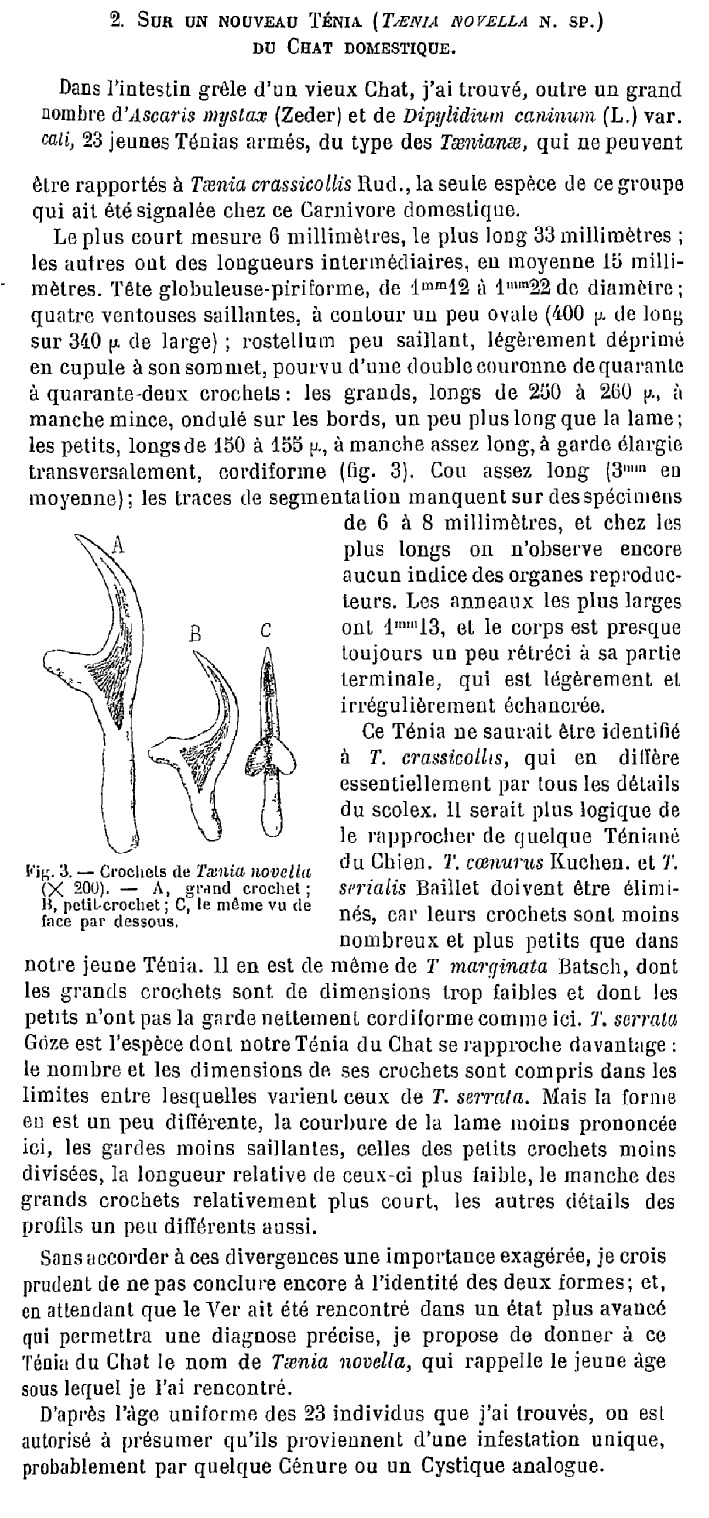 Neumann, G. 1896. Notes sur des téniadés du chien et du chat. Mémoires de la Société Zoologie de France 9: 171-184.