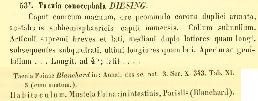 Diesing, K. M. 1854. Über eine naturgemässe Vertheilung der Cephalocotyleen. Sitzungsberichte der Kaiserlichen Akademie der Wissenschaften in Wien, Mathematisch-Naturwissenschaftliche Classe 13(2): 556-616. (549) Download PDF |
