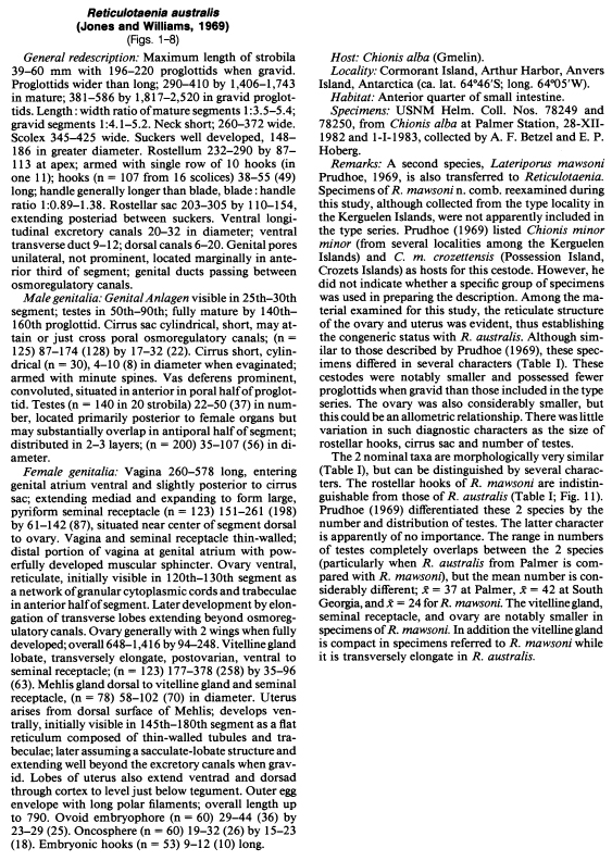 | Authority | (Jones & Williams, 1969) Hoberg, 1985 |