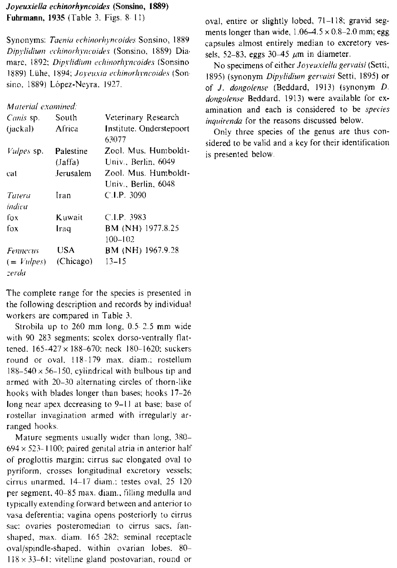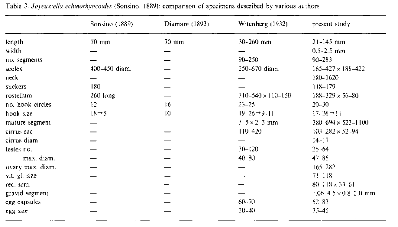 | Valid Name | Joyeuxiella echinorhynchoides (Sonsino, 1889) Fuhrmann, 1935 |