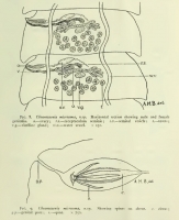 Fig. 8. Choanotaenia microsoma, n.sp. Horizontal section showing male and female genitalia. o.-ovary; r.s.-receptaculum seminis; s.v.-seminal vesicle; t.-testes; v.g.-vitelline gland; w.v.-water vessel. x230. Fig. 9. Choanotaenia microsoma, n.sp. Showing spines on cirrus. c.-cirrus; g.p.-genital pore; s.-spine. x750.