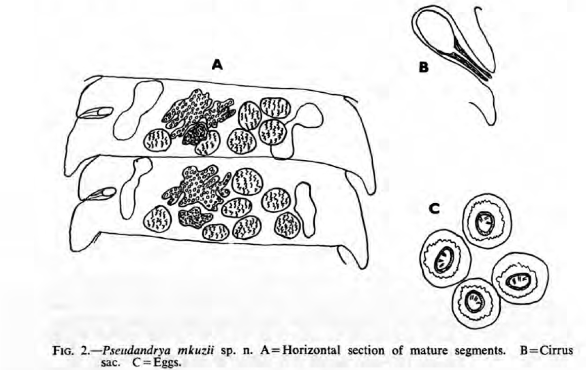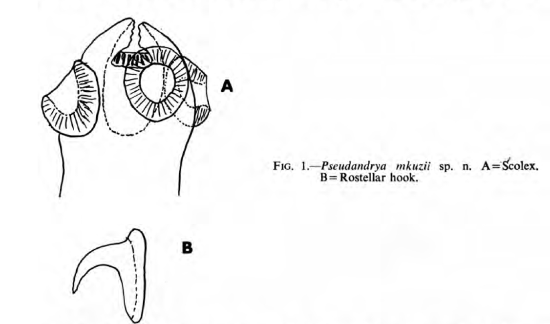 Ortlepp, R. J. 1963. Pseudandrya mkuzii sp. nov, (Hymenolepididae) from Ichneumia albicauda. Onderstepoort Journal of Veterinary Research 30: 127-132. (7466) |