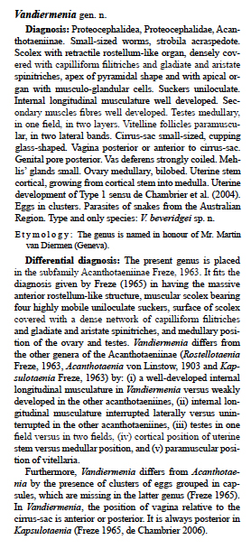 Type Species Vandiermenia beveridgei de Chambrier & de Chambrier, 2010