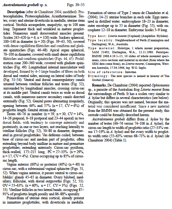 Figs. 5055. Australotaenia grobeli gen. et sp. n. Paratypes BMNH 1968.4.19.1-15,