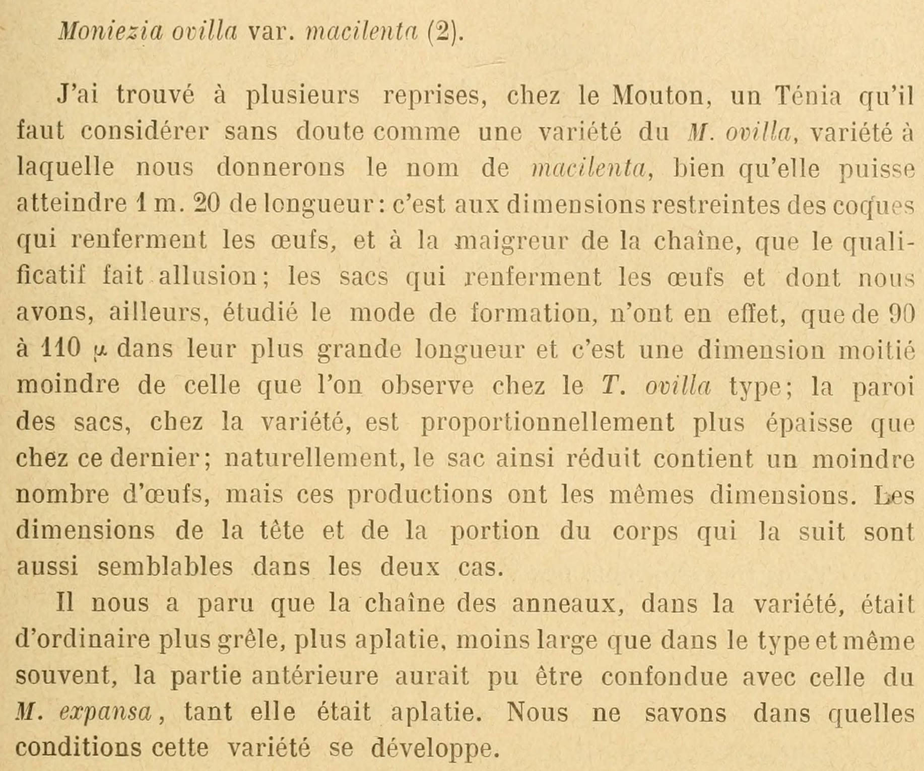 Moniez, R. 1891. Notes sur les helminthes. Especes nouvelles ou peu connues du genre Moniezia. Revue Biologique du Nord de la France 4: 65-79. (4746) Download PDF |