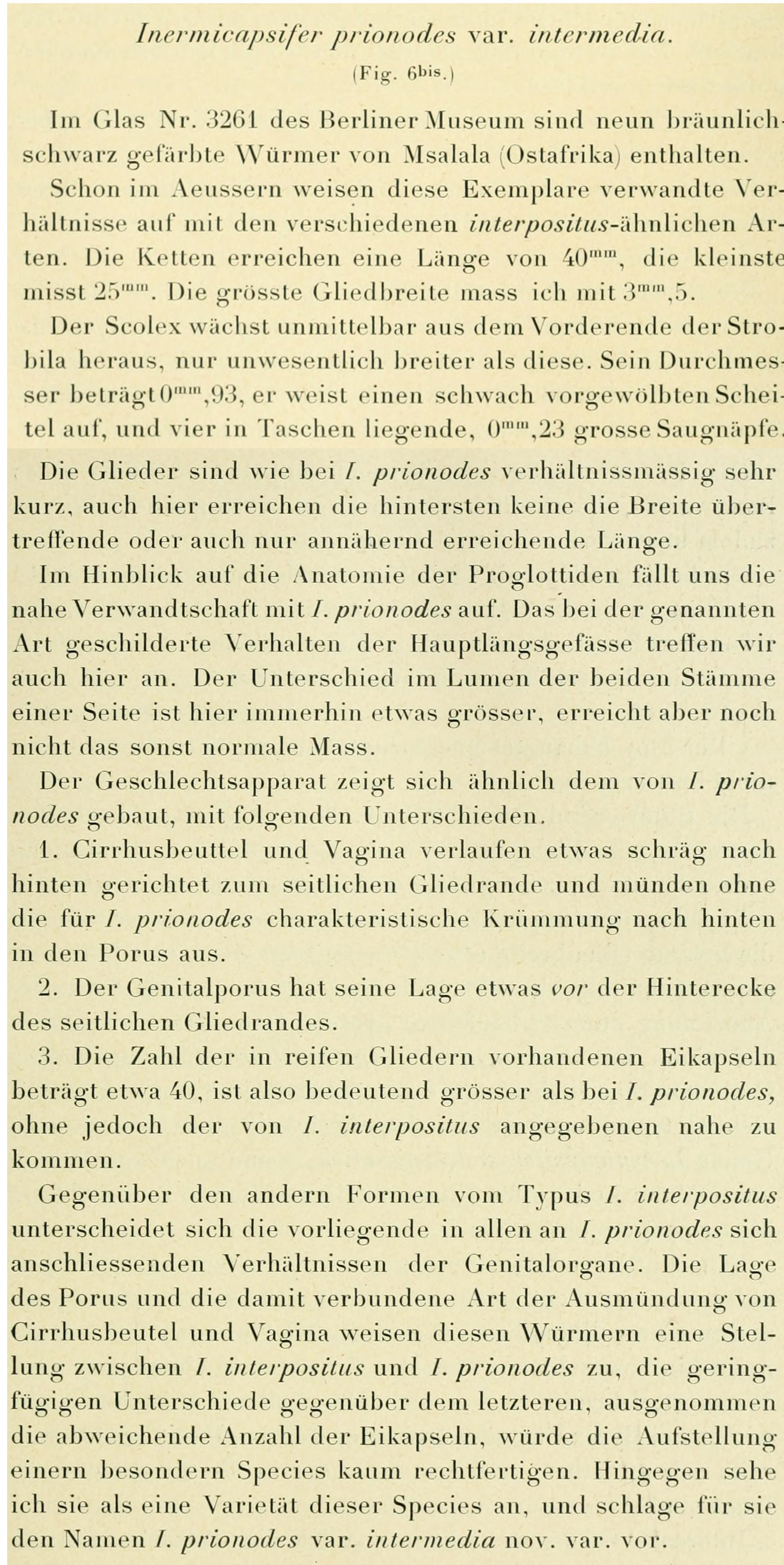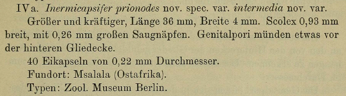 | Valid Name | Inermicapsifer prionodes Bischoff, 1912 |