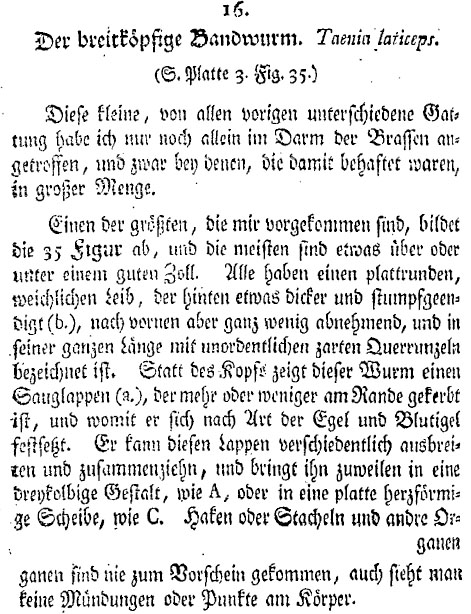 Pallas, P. S. 1781. Bemerkungen über die Bandwürmer in Menschen und Thieren. Neue nordische Beyträge zur physikalischen und geographischen Erd- und Völkerbeschreibung, Naturgeschichte und Oekonomie. 1. Band, St. Petersburg und Leipzig : 39-112. (4643) Download PDFMueller, O. F. 1787. Verzeichniss der bisher entdeckten Eingeweidewürmer der Thiere, in welchen sie gefunden wurden, und besten Schriften die dieselben erwähnen. Naturforscher Halle 22: 33-86. (6884) |