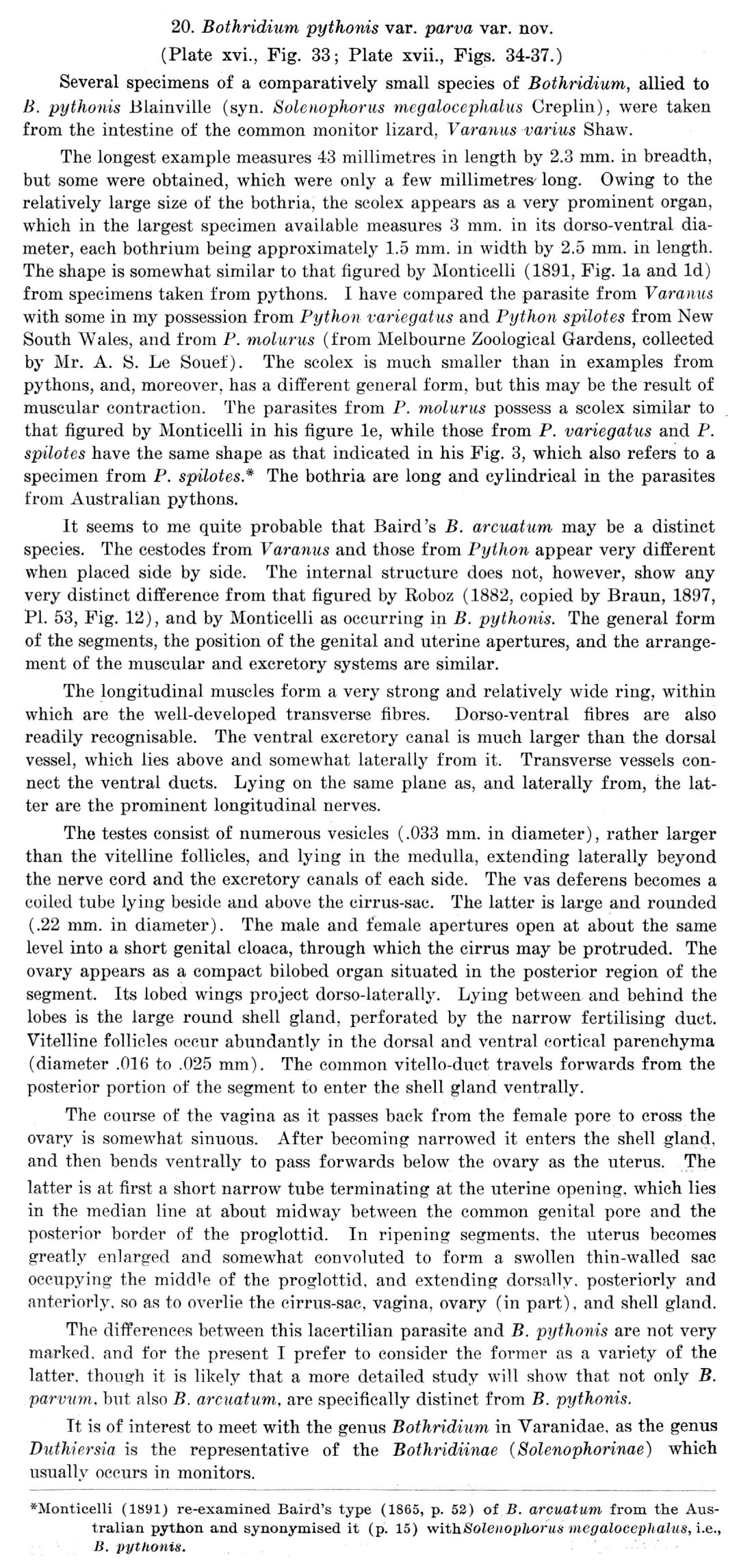 a.s., accessory saccnlus; b., bothrium; c., cirrus; c.s., cirrus-sac; c.b., cavity of bothrium; e.g.; cement glands; d.e.v., dorsal excretory vessels;; d.v.m., dorso-ventral muscle; e., egg; e.c., egg capsule; e.p., excretory pore; e.v., excretory vessel ; g.c., genital cloaca; g.p., genital pore; h., hook; l., lemniscus; l.m., l.m.l., l.m. 2, longitudinal muscles; m.b., male bursa; n., longitudinal nerve; ov., ovary; p.s., proboscis sheath; r., rostellum; r.c., rostellar sac; r.s., receptaculum seminis; s., sphincter muscle surrounding genital cloaca; s.g., shell gland; s.l., suspensory ligament; t., testis; t.e.v., transverse excretory vessel; tr. m., transverse muscle; u., uterus; u.b., uterine bell; u.a., uterine aperture; u.d., uterine duct; ·v., vagina; v.d., vas deferens; v.e.v., Yentral excretory vessels; v.g., vitelline gland; v.s., vesicnla seminalis; vt. d., vitelline duct. |