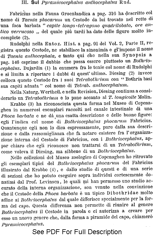 Monticelli, F. S. 1890. Note elmintologiche. Bollettino della Societa dei Naturalisti in Napoli 4(2): 189-208. (4193) Download PDF |