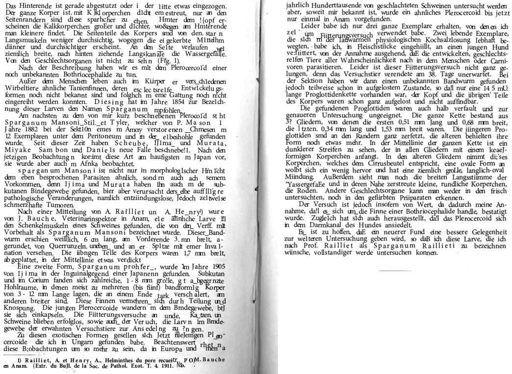 Rátz, S. 1913. Ein Plerocercoid von dem Schwein. Centralblatt für Bakteriologie, Parasitenkunde und Infektionskrankheiten 67(7): 523–527.