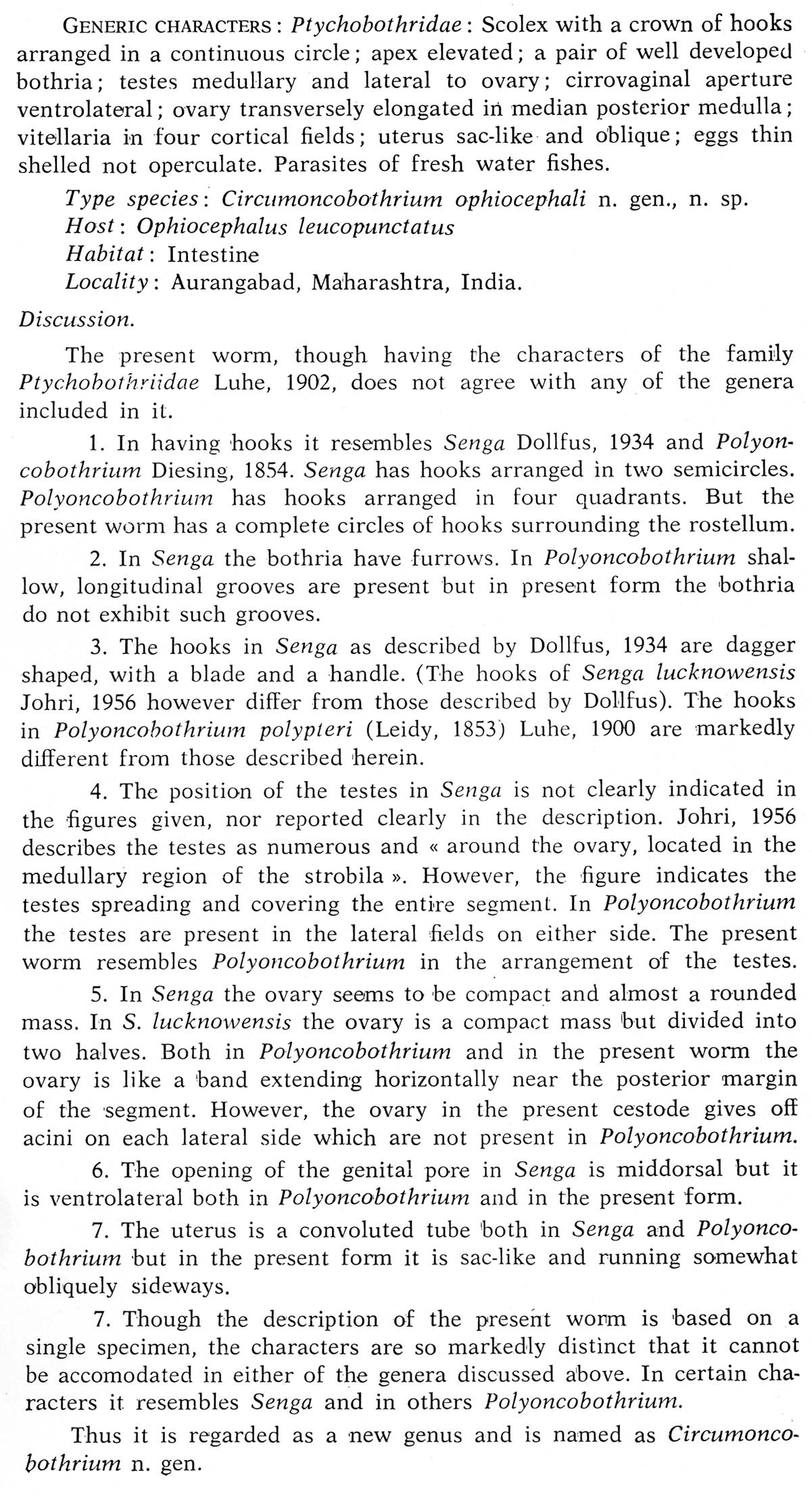 | Type Species | Circumoncobothrium ophiocephali Shinde, 1968 |