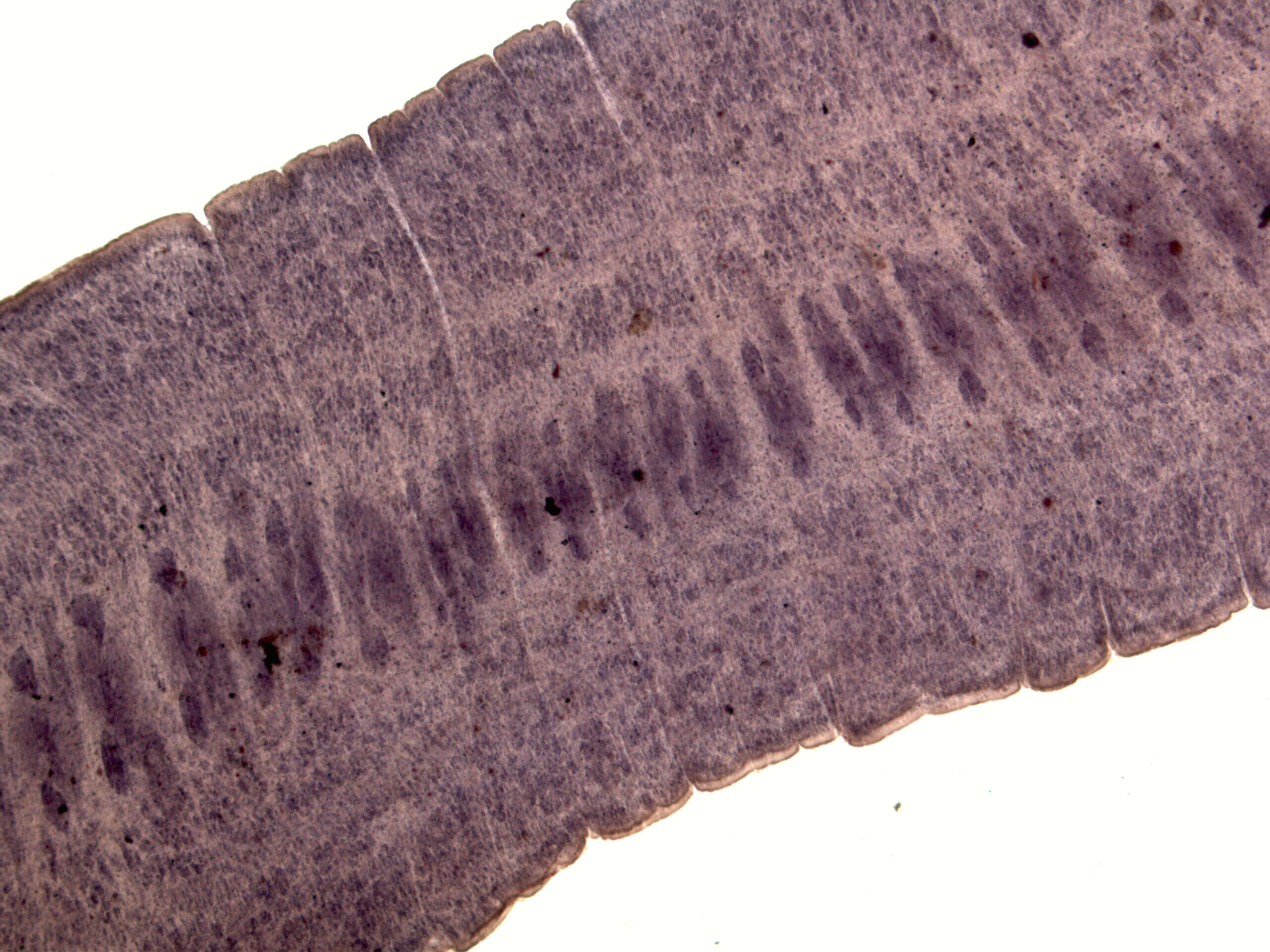 Fig. 7. Ventral aspect of a portion of the 76mm. worm anterior to the gravid segments. x12.