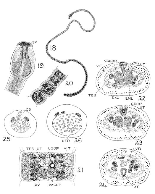 Total Number of Type Specimens -3 whole worms and portions of about three others, all stained and mounted whole, and large number of transverse and horisontal well-stained sections
