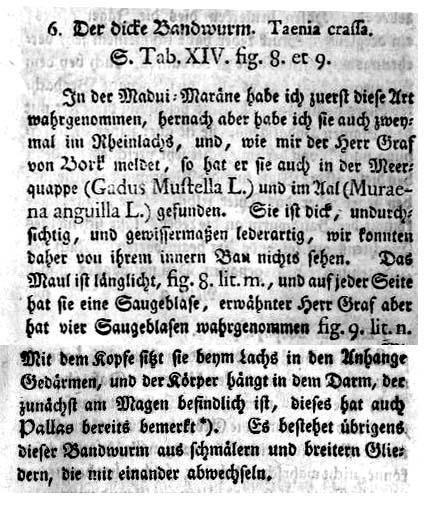 Bloch, M.E. 1779. Beytrag zur Naturgeschichte der Würmer, welche in andern Thieren leben. Beschäftigungen der Berlinischen Gesellschaft Naturforschender Freunde 4: 534-561. (6354) |