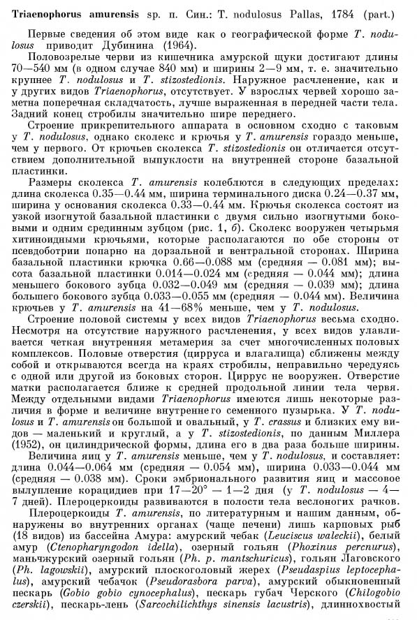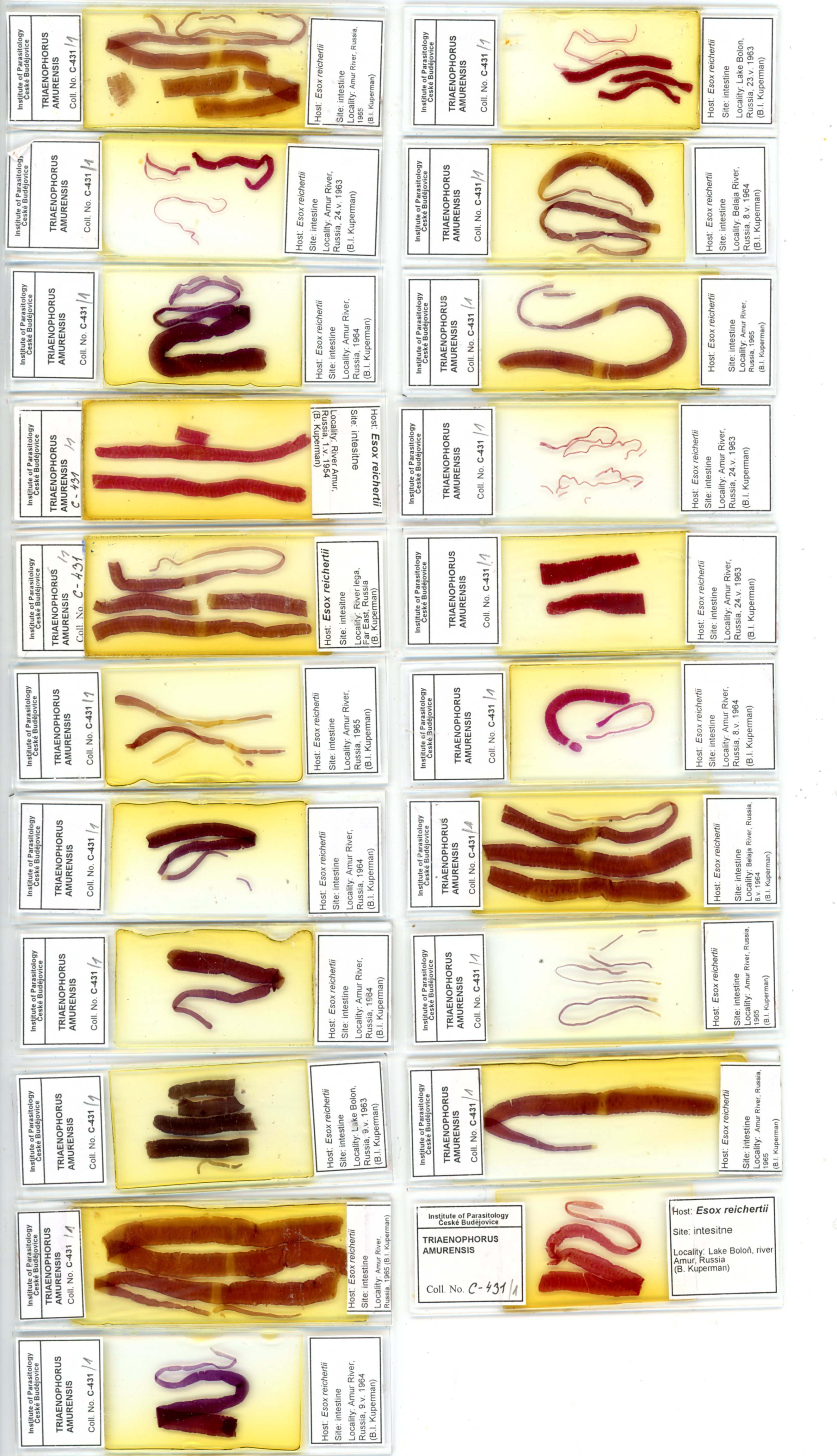 | Additional Host(s) | Procercoids develop in the body cavity of copepods. Plerocercoids according to literature and our data in internal organs (more often liver) of 18 cyprinids species from the Amur basin: Amur chebak (Leuciscus waleckii), grass carp (Ctenopharyngodon idella), lake minnow (Phoxinus percnurus) , Manchu lake minnow {Ph. p. mantschuricus), Lagovskiy's minnow (Ph. lagowskii), Amur flat-headed asp (Pseudaspius leptocephalus), Amur gudgeon (Pseudorasbora parva), Amur gudgeon (Gobio gobio cynocephalus), black gudgeon ), long-tailed spiny gudgeon (Saurogobio dabryi), Amur black-bellied podust (Xenocypris macrolepis), skygazer (Erythroculter erythropterus), common belly-bellied (. Surrinus carpio haematopterus), silver carp | ||||||