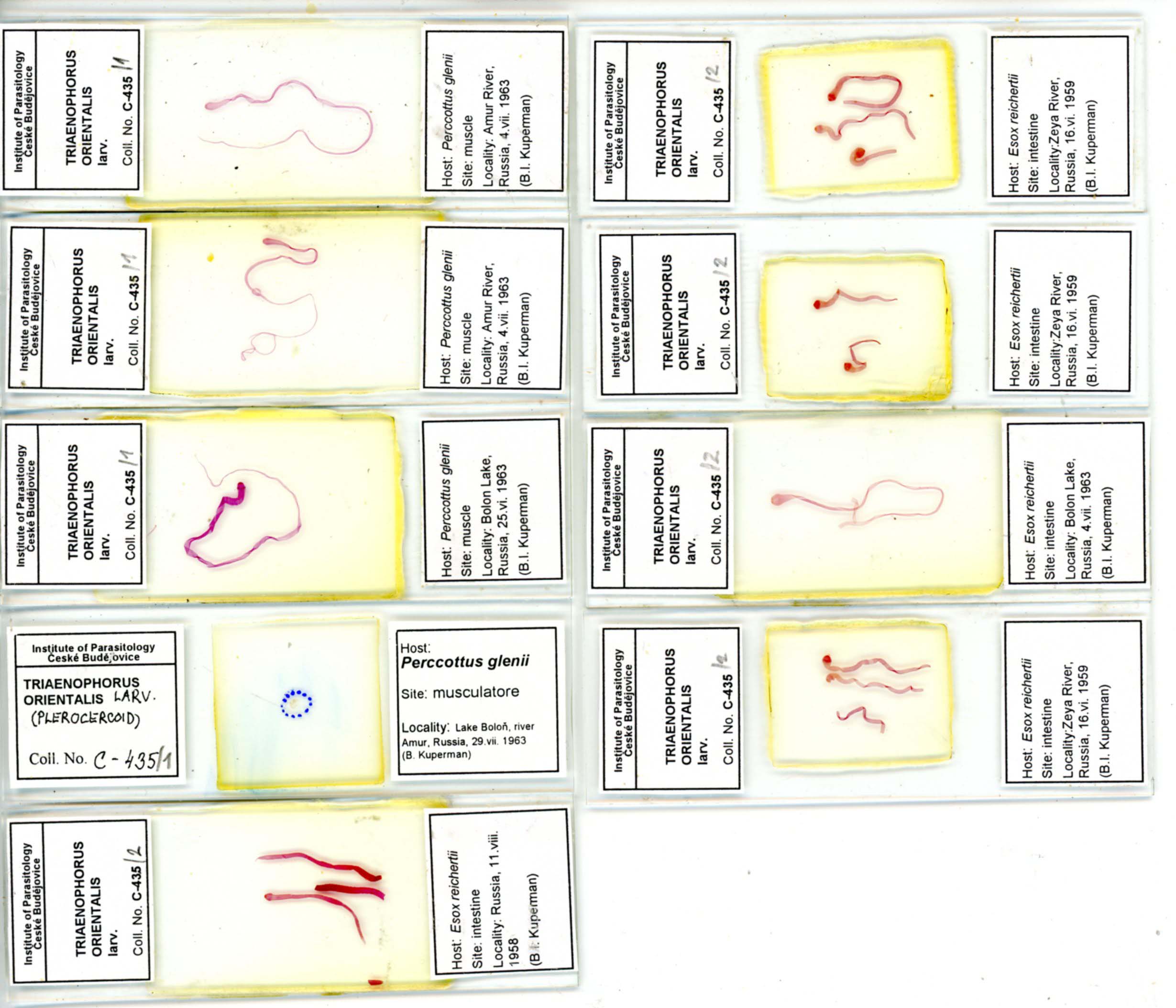 Kuperman, B. I. 1968. New species of the genus Triaenophorus Rud. (Cestoda, Pseudophyllidea). Parazitologiya 2: 495-501.