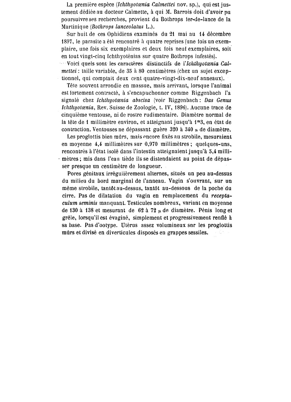 Barrois, T. 1898. Sur quelques Ichthyotaenias parasites des serpents. Bulletin de la Société des Sciences, de l’Agriculture et des Arts de Lille 2: 6-9. (4020) Download PDF |