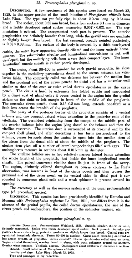 Yamaguti, S. 1934. Studies on the helminth fauna of Japan. Part 4. Cestodes of fishes. Japanese Journal of Zoology 6: 1-112.