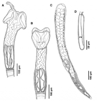 Fig. 1 Pristiorhynchus palmi n. g., n. sp. from Anoxypristis cuspidata in the Arafura Sea (A, C, D) and from Pristis zijsron in the Coral