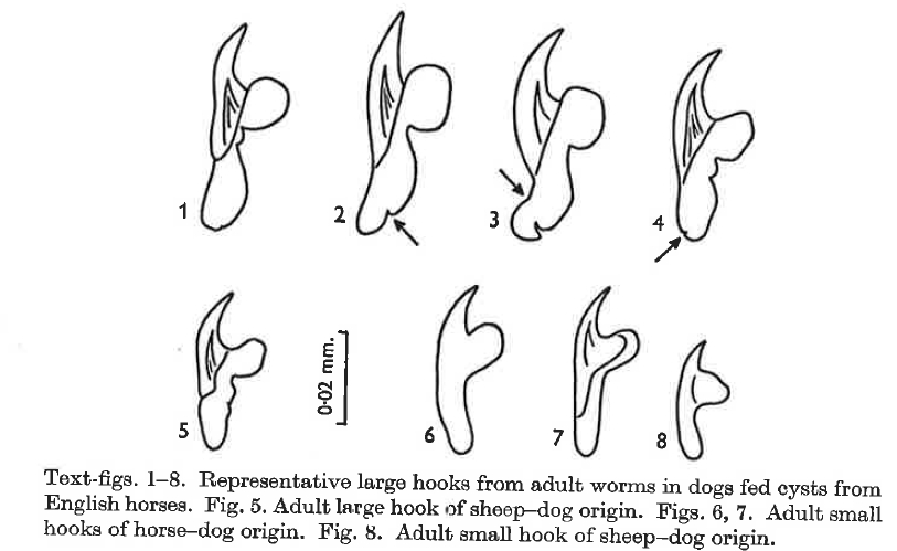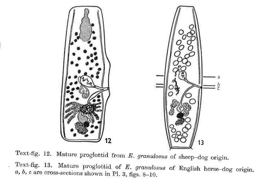 Williams, R. J. and G. K. Sweatman. 1963. On the transmission, biology and morphology of Echinococcus granulosus equinus, a new subspecies of hydatid tapeworm in horses in Great Britain. Parasitology 53: 391-407. (6245) Download PDFThompson, R. C. A. and D. P. McManus. 2002. Towards a taxonomic revision of the genus Echinococcus. Trends in Parasitology 18: 452-457. (6246) Download PDF |