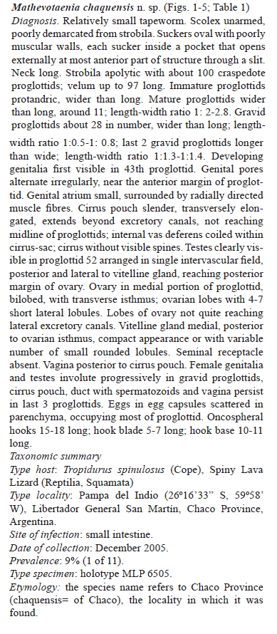 Mathevotaenia chaquensis Lunaschi. Lamas & Drago, 2012