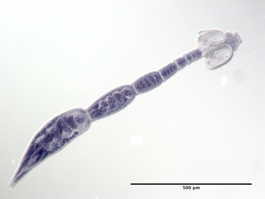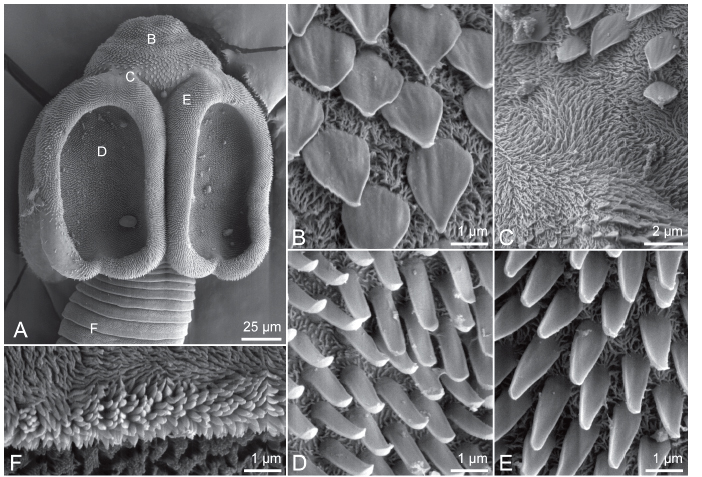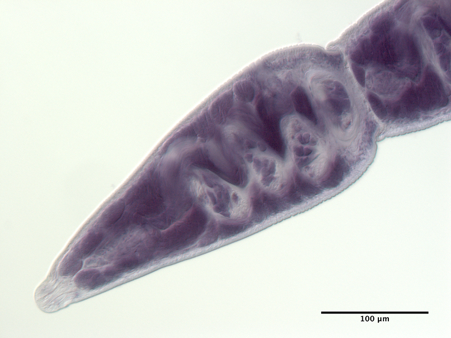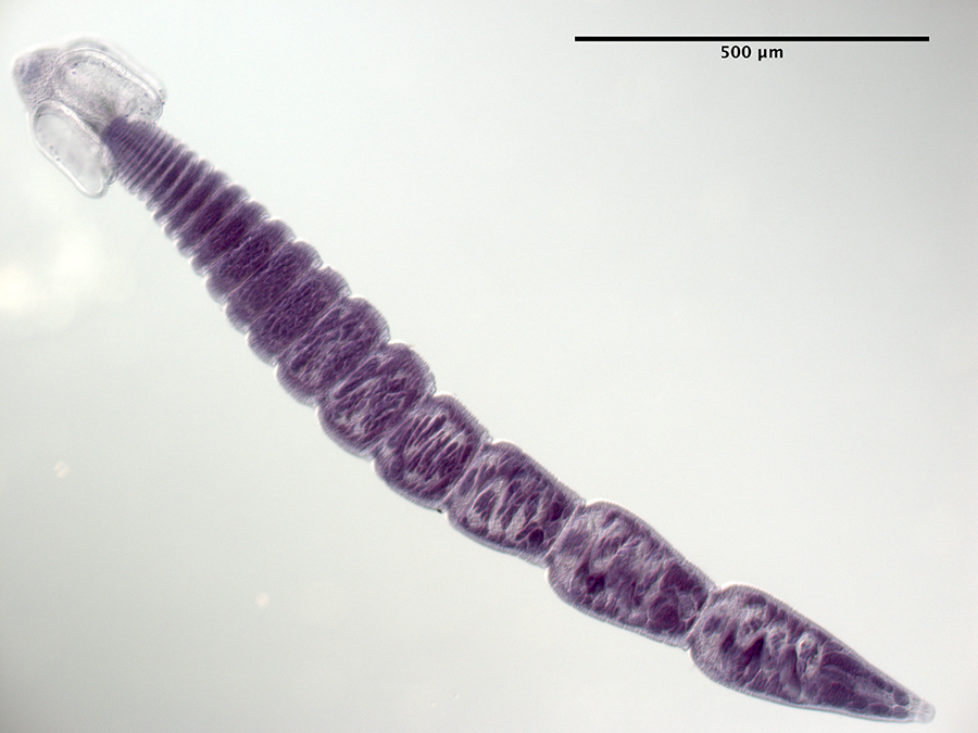 Type Material Holotype: MZUM(P) 2013.7(H) Paratypes: MZUM(P) 2013.8(P)–11(P) (4 whole mounts); ZRC.PAR. 25, 26 (2 whole mounts); USNPC 10625–10630 (6 whole mounts and proglottid cross-section series); LRP 7974–7981 (5 whole mounts, and proglottid cross-section series and voucher; three whole prepared for SEM retained by K. Jensen at the University of Kansas