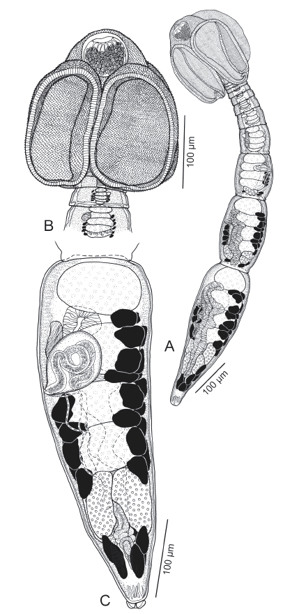 paratype (USNPC 106522); C, terminal proglottid, holotype (MZUM[P] 2013.4[H]).