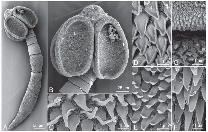 bothridial surface; F, proximal bothridial surface; G, surfaces at boundary between adjacent proglottids.