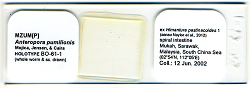 | Total Number of Type Specimens | 22 specimens: 20 whole mounts of mature worms and two whole worms prepared for SEM |