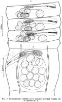 Fig. 2. a – hermaphroditic mature proglottids; b– pregravid proglottid.