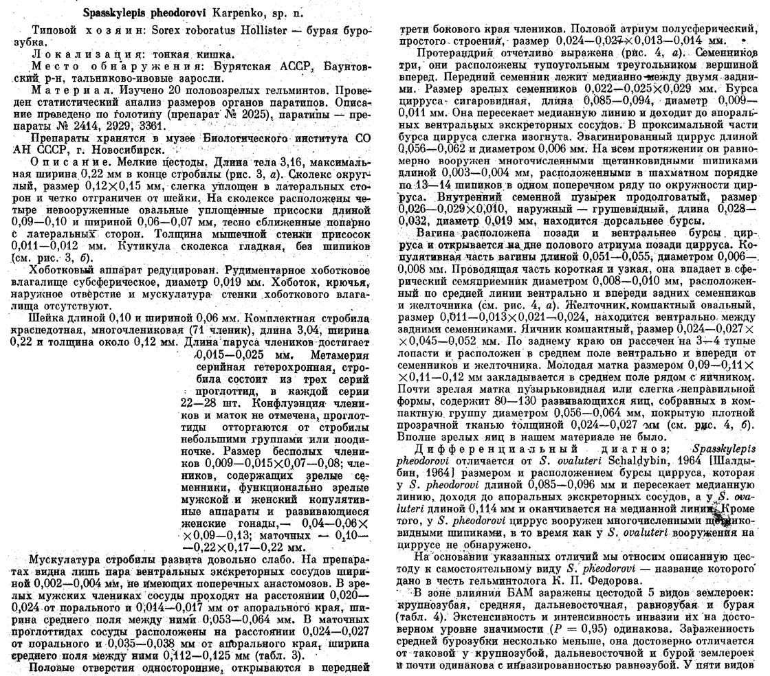 Karpenko, S.V. 1984c. [Two new species of hymenolepidids (Cestoda) from the shrews of Trans-Baikal region.]. In Chlenistonogie I Gel’minty, A. I. Cherepanov (ed). Nauka, Novosibirsk, 107-117 pp. (6153) Download PDF |