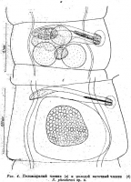 Fig. 2. a – hermaphroditic mature proglottid; b – pregravid proglottids.