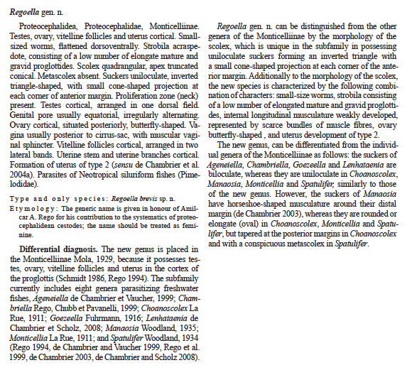 | Type Species | Regoella brevis Arredondo, de Chambrier & Gil de Pertierra, 2013 |