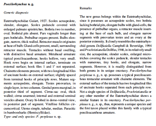 | Type Species | Poecilorhynchus perplexus Schaeffner & Beveridge, 2013 |