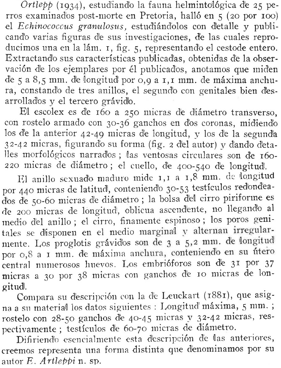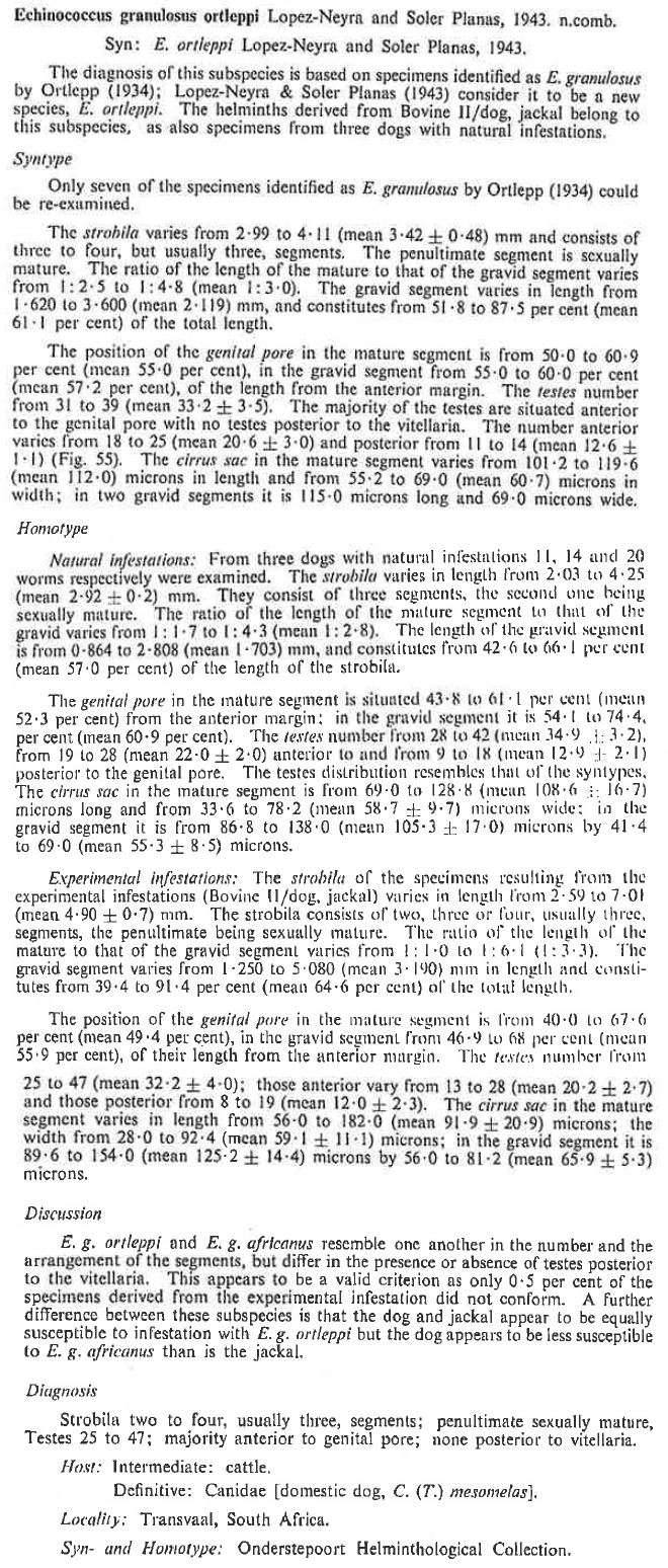 | Valid Name | Echinococcus ortleppi Lopez-Neyra & Soler Planas, 1943 |