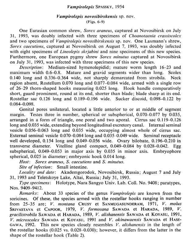Sawada, I. and S. Kobayashi. 1994. Cestode parasites of some micromammalians (Insectivora) from the adjacent area of Akademgorodok City, Southern Central Siberia and Northern Teletskoye Lake, Altai Region, Russia. Proceedings of the Japanese Society of Systematic Zoology 52: 14–33. (6269) Download PDF |