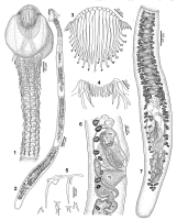 Figs. 1-7. Halysioncum gibsoni sp. n. Fig. 1. Scolex, dorsoventral view (holotype, MZUMP 2013 .32). Fig. 2. Entire worm (paratype,
